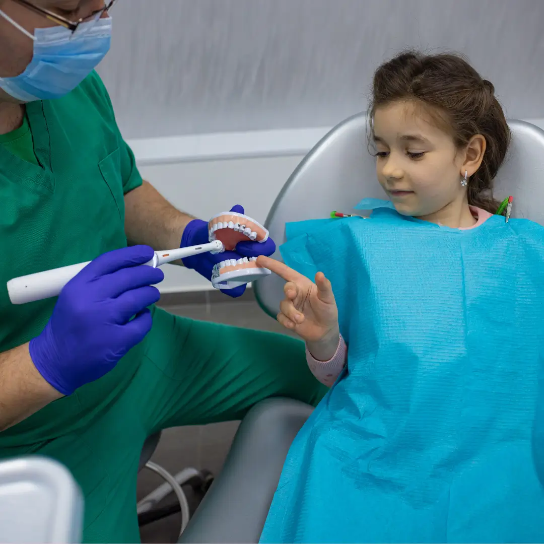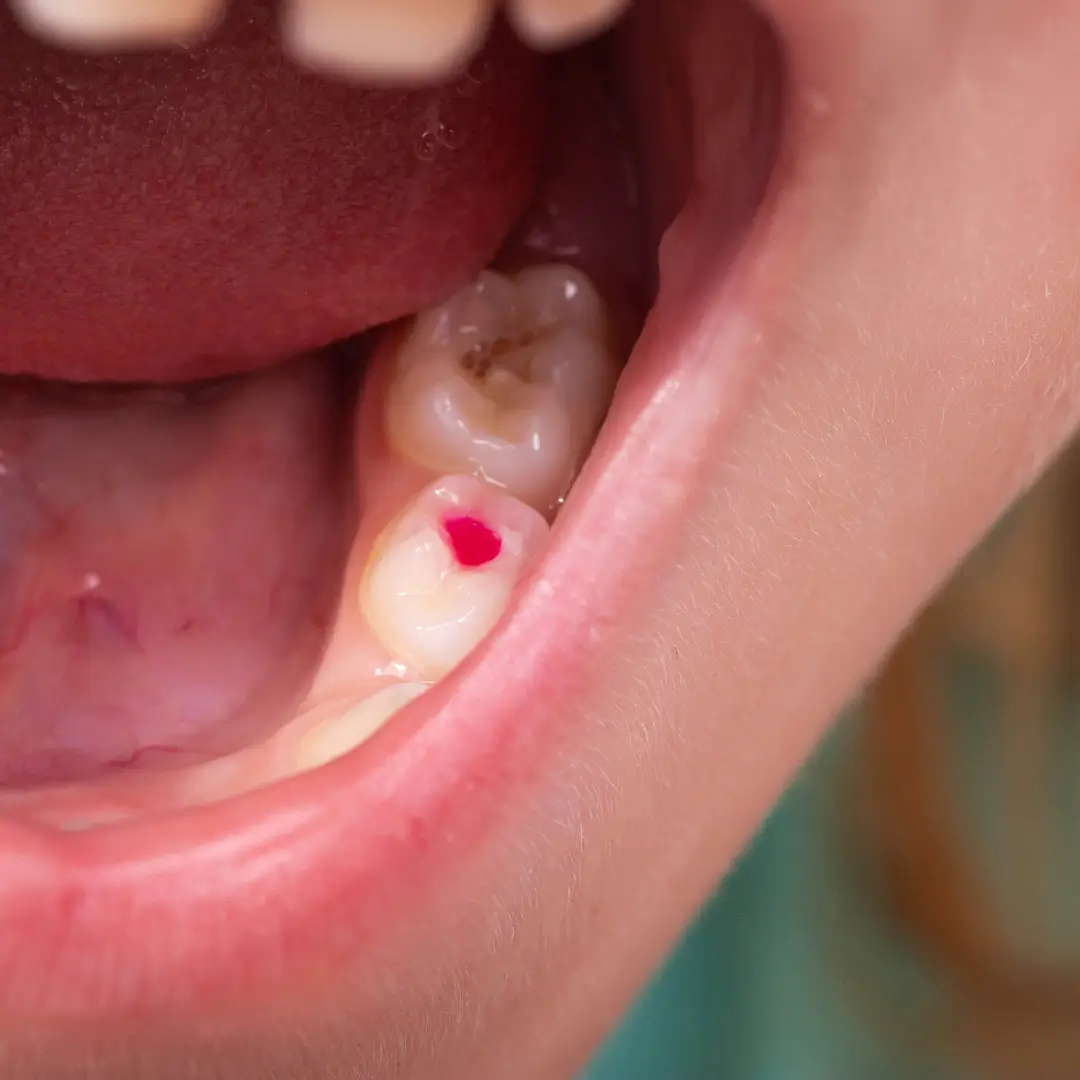Extracción segura de dientes temporales cuando es necesario, ya sea por caries o para facilitar la erupción de los dientes permanentes.