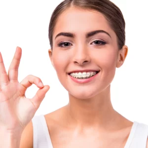 Similar a los brackets metálicos, pero fabricados con cerámica translúcida o porcelana que se mezcla mejor con el color de los dientes.